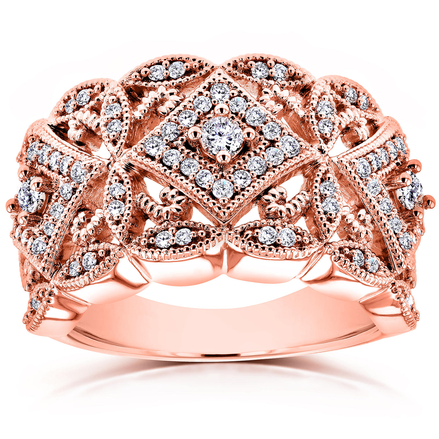 New Diamond 14k Rose Gold Milgrain Ring Round Cut 84ct Womens