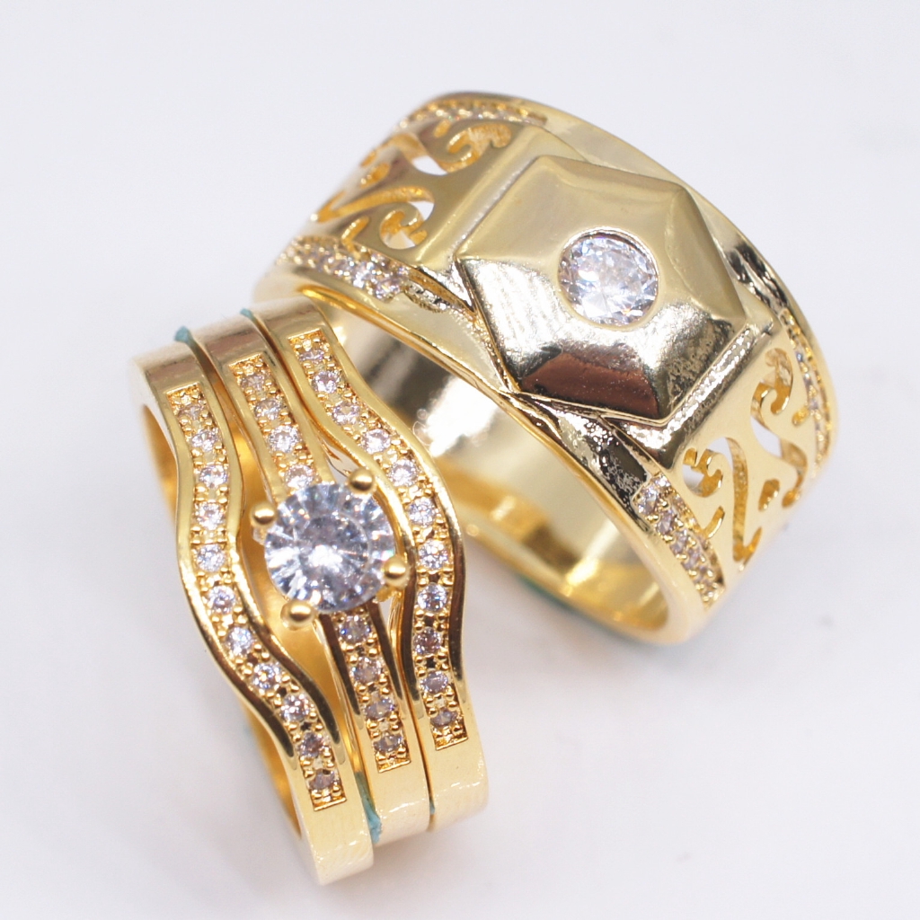 18k Gold Couple Ring Vogue Diamond Set Zircon Engagement Rin